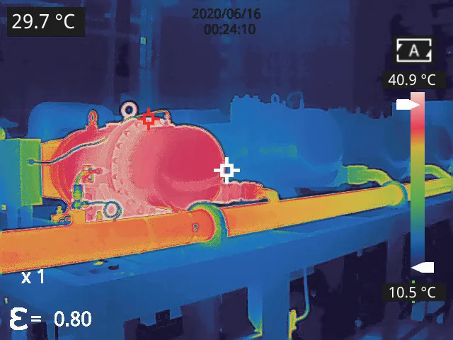 A thermal camera can accurately locate refrigerant leaks, helping to prevent continuous leakage and reduce energy loss. In addition, it can monitor the housing, motor, cylinder, coolant outlet, and control device of the compressor system to track its operating status and improve efficiency.