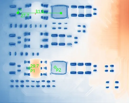 During the design and test of the circuit board, researchers need to monitor the temperature of the electronic components in the circuit board to figure out the temperature load of each component. During the test, it is necessary to simulate the actual working environment of the circuit board and observe the temperature state of electronic components from power-on to stabilization. As electronic components in the circuit board are highly exquisite, traditional contact temperature measurement equipment is complicated to work with and cannot meet the testing requirements of scientific researchers.