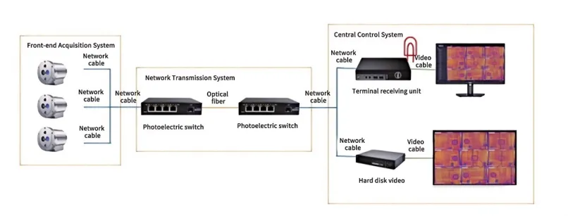All-weather monitoring of the highest temperature, lowest temperature, and average temperature; the automatic alarm threshold can be set as needed. If the temperature is abnormal, the thermal camera supports an automatic alarm and captures on-site images.