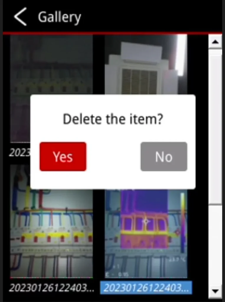 In the gallery preview interface, select the file you want to delete, then press and hold the confirm button to bring up the prompt box.
