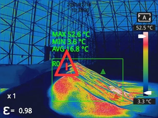 In coal storage yards, coal warehouses, and other places, heating or even spontaneous combustion of coal piles may occur due to poor ventilation. Abnormal points can be detected at the smoldering stage of coal piles using a TE365 dual-spectrum explosion-proof bullet camera or a TE464T1 dual-spectrum explosion-proof PTZ camera to eliminate the hazards.